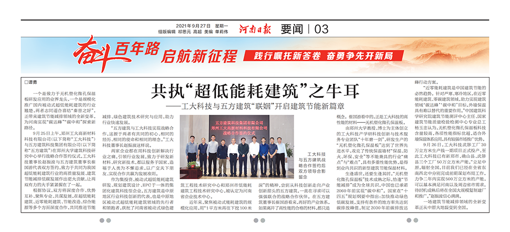一個(gè)是致力于無機(jī)塑化微孔保溫板研發(fā)應(yīng)用的業(yè)界龍頭,一個(gè)是規(guī)模化推廣國(guó)內(nèi)被動(dòng)式超低能耗建筑的行業(yè)翹楚,兩者志同道合喜結(jié)“秦晉之好”,正帶來建筑節(jié)能減排領(lǐng)域的全新變革,為河南實(shí)現(xiàn)“碳達(dá)峰”“碳中和”探索新路徑。